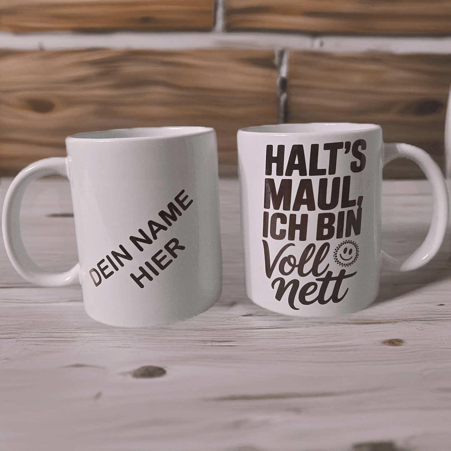 Tasse „Voll nett“ – Der charmante Mittelfinger - Auf Wunsch personalisiert