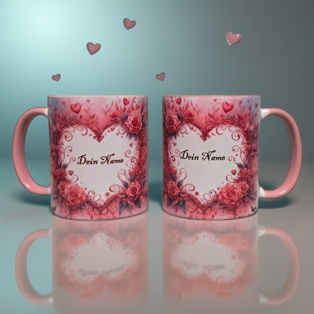 Personalisierte Rosen-Tasse – Dein Name im Herzen
